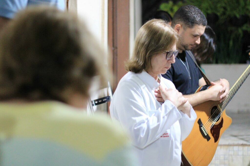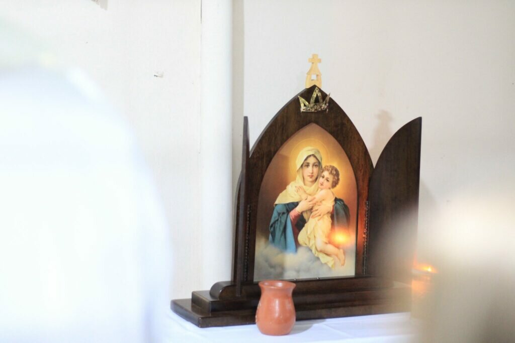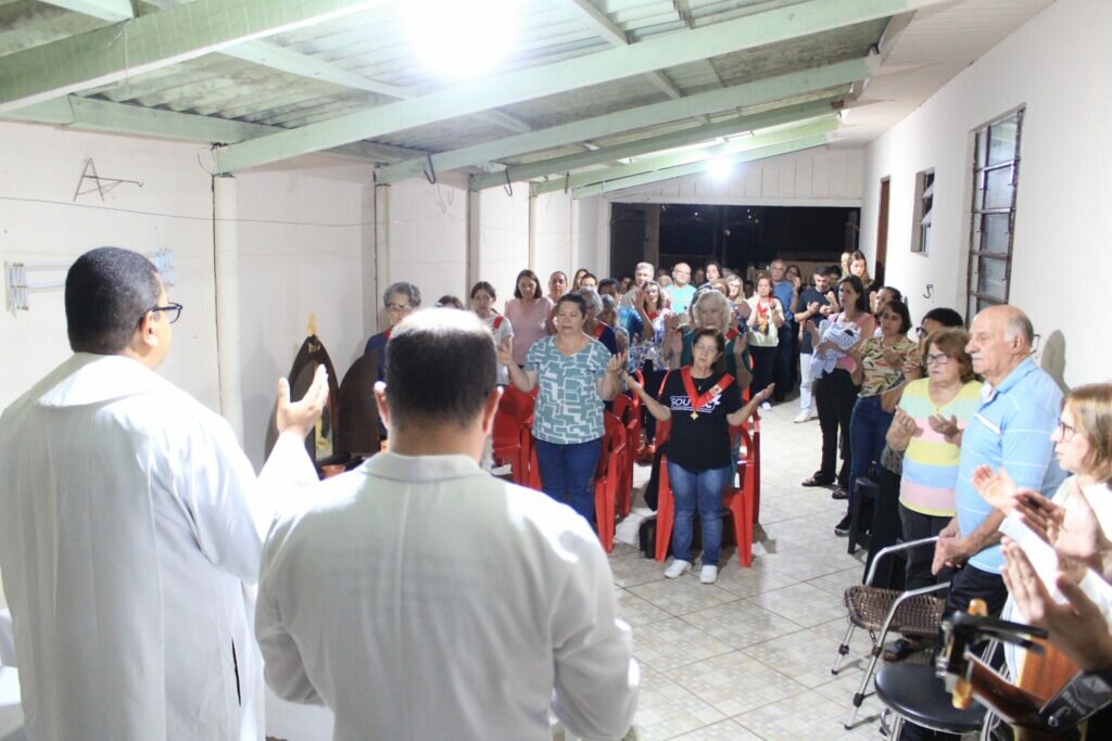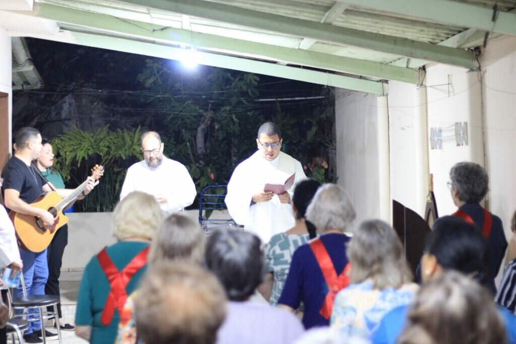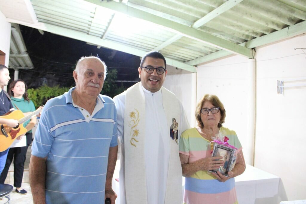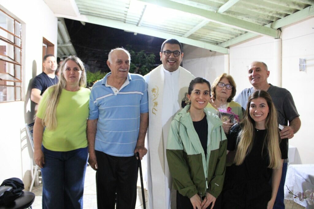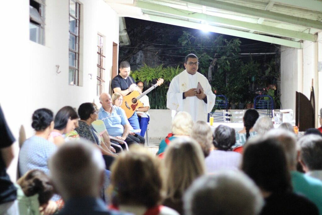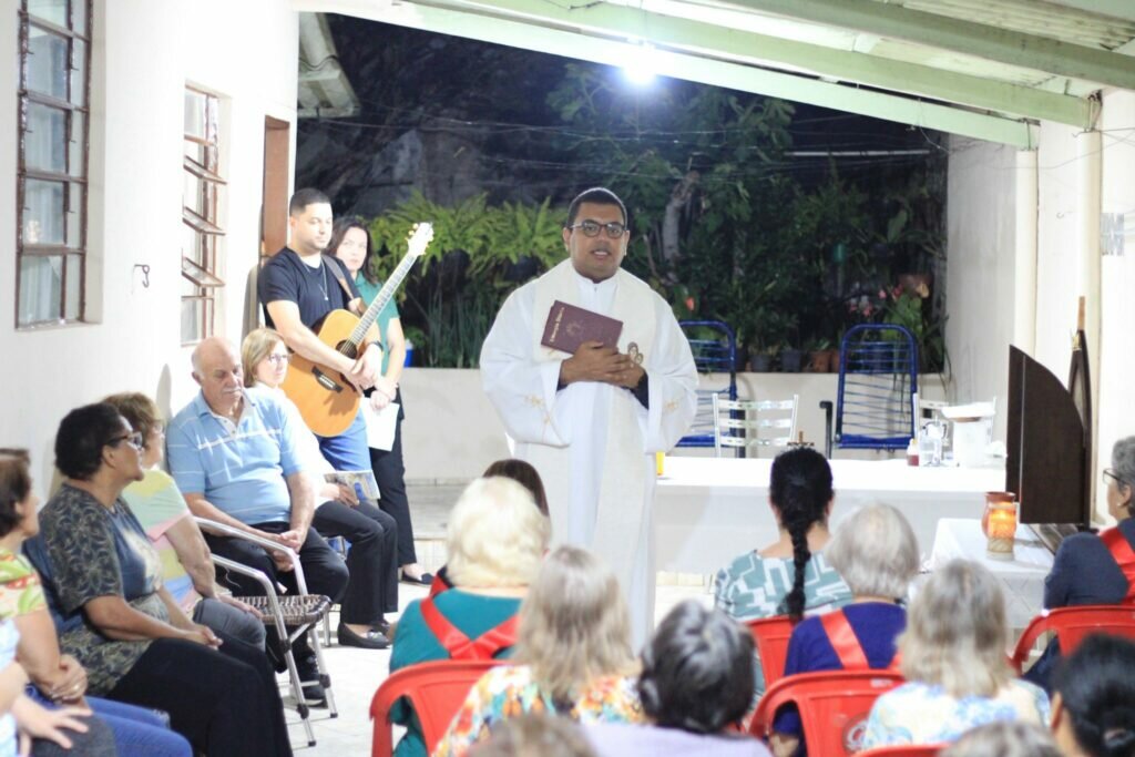 Na noite dessa terça feira, 07 de outubro, o Pe. Dirceu Reis, pároco, presidiu a Santa Missa na casa da dona Tereza no Jardim Leonor. A celebração faz parte da visita paroquial da capela da Mãe Rainha e Vencedora. “O Espírito Santo nos torna firmes e perseverantes na oração e rezar a Ave Maria é tomar posse das palavras do anjo Gabriel na anunciação. Imitemos a generosidade do coração da Virgem Maria” disse o padre em sua homilia na Missa de Nossa Senhora do Rosário.