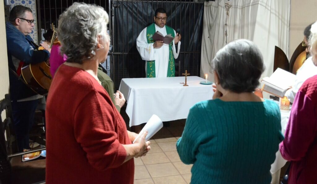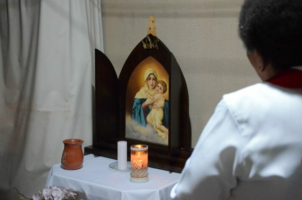Na noite dessa quarta feira, 08 de outubro, o Pe. Dirceu Reis, pároco, presidiu a Santa Missa na casa da dona Joana. A celebração faz parte da programação da visita paroquial da Mãe Rainha e Vencedora. “Pecamos a Nossa Senhora que nos ensine a generosidade de coração para fazermos a vontade de Deus e que, pela sua intercessão, sejamos sempre livre de todo o mal”, disse o padre na homilia. Ao final da celebração foi realizada uma deliciosa confraternização.