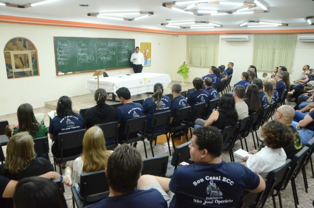 Na noite de segunda feira, 24 de novembro, dezenas de casais da Paróquia São José Operário se reuniram no auditório do Centro Catequético para uma catequese com o Pe. Dirceu Reis, pároco. Nessa catequese o padre refletiu e contemplou as figuras de Maria, José e Jesus de Nazaré.