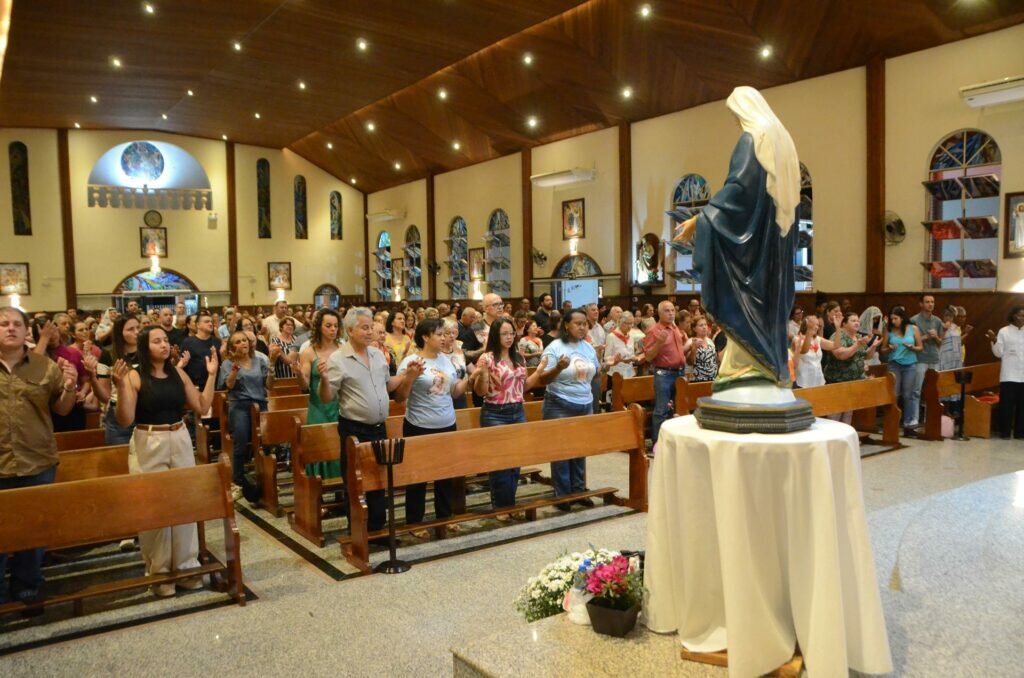 Centenas de fiéis participaram da Santa Missa em honra a Nossa Senhora das Graças da Medalha Milagrosa na noite dessa quinta feira, 27 de novembro, na Paróquia São José Operário. A celebração foi presidida pelo pároco, Pe. Dirceu Reis.