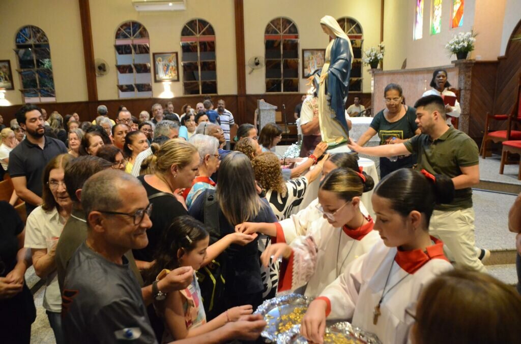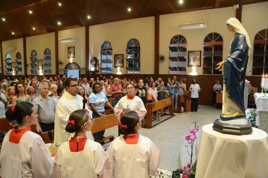 Ao final da celebração toda a comunidade se consagrou à Nossa Senhora das Graças e os fiéis receberam a Medalha Milagrosa. Um grande presente na relação com Maria.
