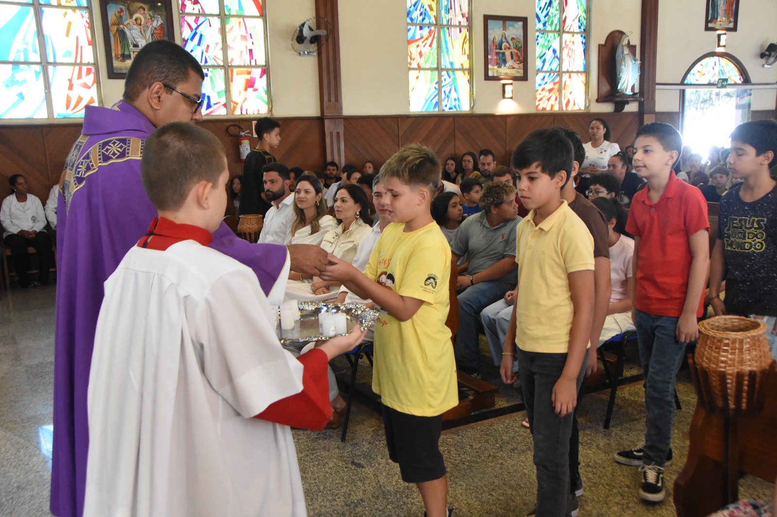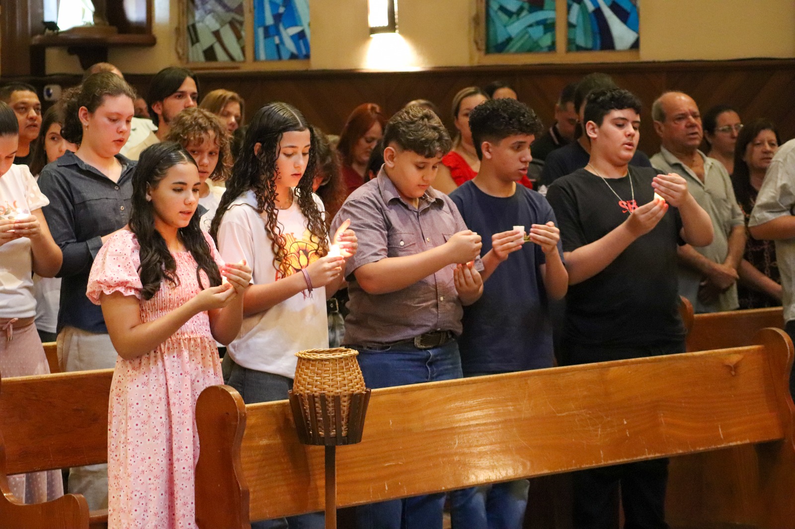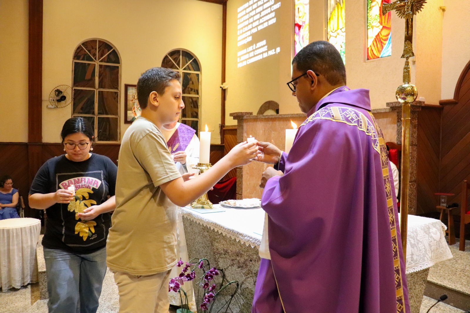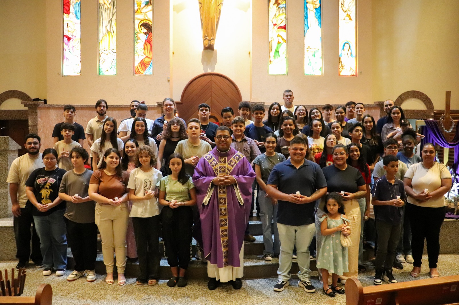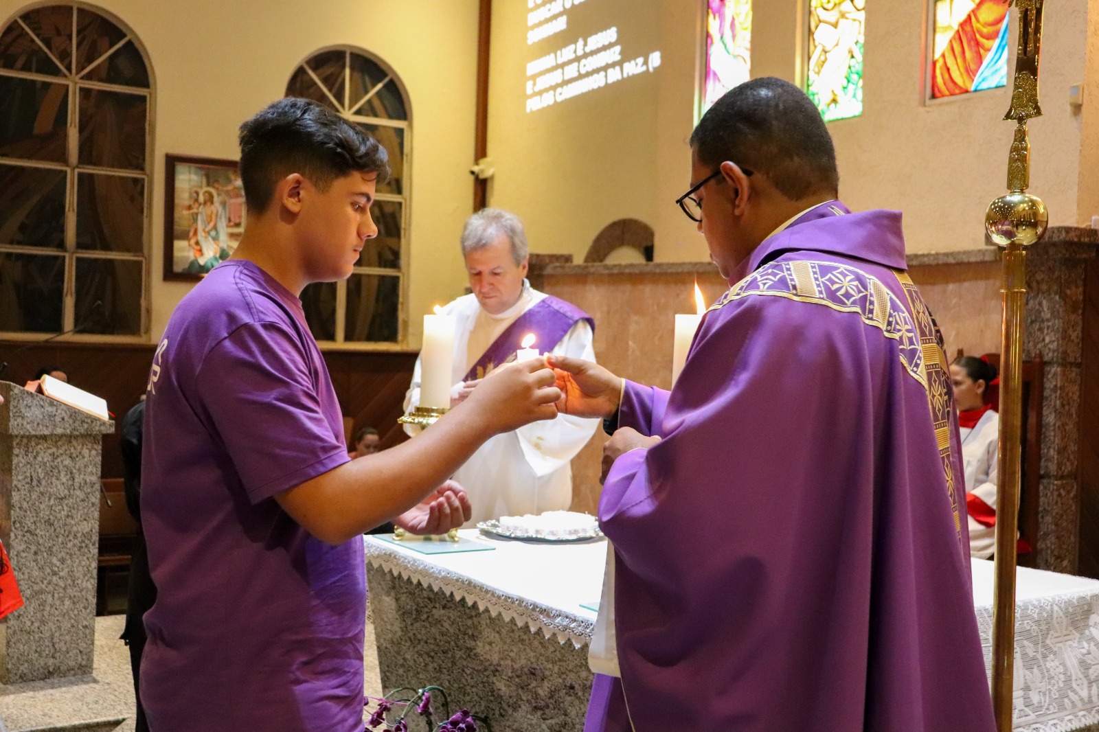 Nas Missas de sábado, 14/03, a noite e, as 9h30 no domingo, 15/03, os catequizandos do segundo tempo crismal celebraram o segundo escrutínio na liturgia do 4º Domingo da Quaresma. Durante a Missa eles receberam uma benção especial para serem capazes de renunciar ao mal e procurar sempre o bem, a fim de serem fiéis e perseverantes na fé católica.