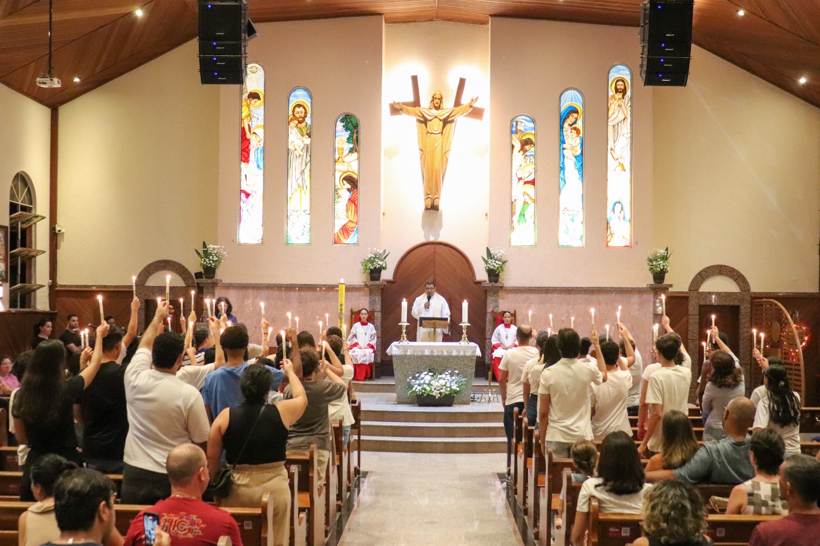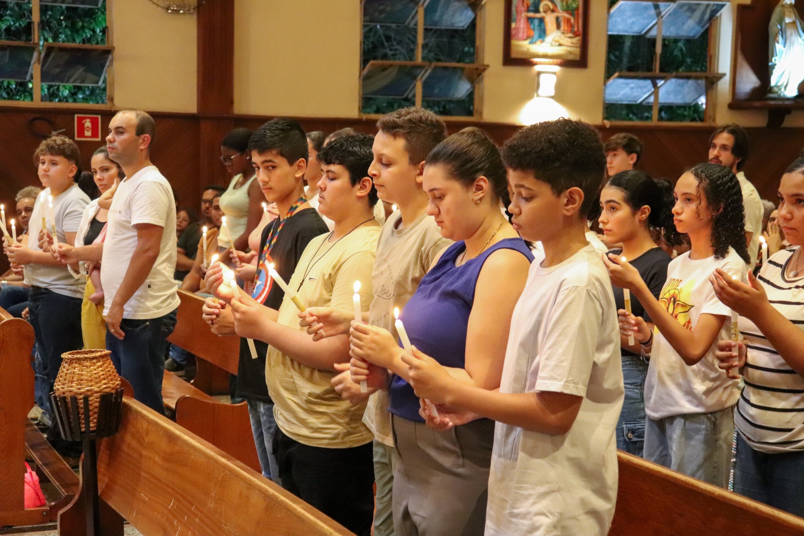 Na noite de sexta feira, 17 de abril, na Paróquia São José Operário os catequizandos, adolescentes e adultos, que estão na caminhada de Iniciação a Vida Cristã e, quem em poucas semanas, irão celebrar a Primeira Eucaristia, realizaram o rito de renovação das promessas do batismo.