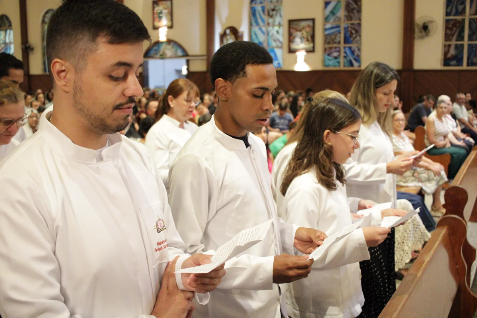 Na noite desse domingo, 22 de março, durante a Santa Missa do 5º Domingo da Quaresma foram instituídos cinco novos ministros leitores da Paróquia São José Operário. O (a) leitor (a) da Santa Missa é um ministro leigo instituído para proclamar a Palavra de Deus na celebração litúrgica, lendo as leituras bíblicas (exceto o Evangelho), recitando o Salmo responsorial (na falta de um salmista) e anunciando as intenções da Oração Universal. A função exige preparação espiritual, conhecimento da Sagrada Escritura e uma boa técnica de leitura, com postura digna e expressividade para que a Palavra seja bem comunicada à assembleia.