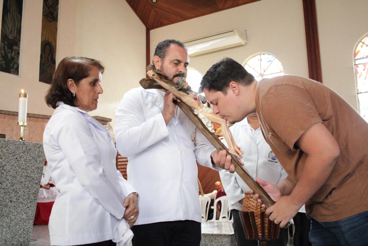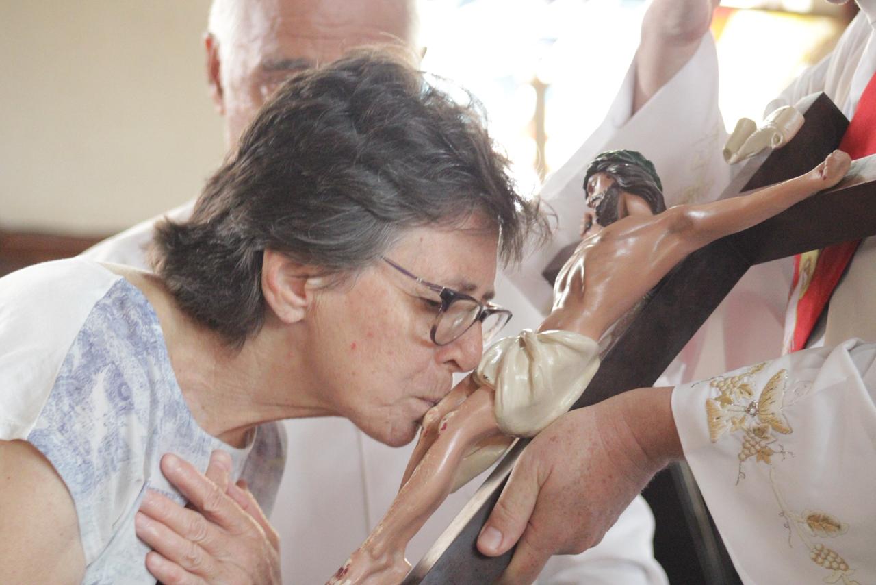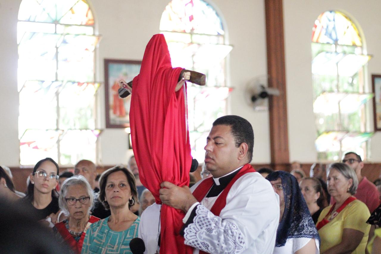Centenas de fiéis participaram as 15 horas nessa sexta feira santa, 03/04, da Celebração de adoração da Cruz na Paróquia São José Operário. “Essa celebração nos ensina, verdadeiramente, o porque somos filhos e filhas de Deus. Cristo morreu pelos nossos pecados. Sem culpa e sem macha pagou o preço dos nossos pecados e nos tornou filhos e filhas do mesmo Pai. Diante da grandeza desse amor temos que nos ajoelharmos e silenciar os nossos lábios. Nada se iguala ao que Jesus fez por cada um de nós!” disse o Pe. Dirceu Júnior dos Reis em sua homilia.