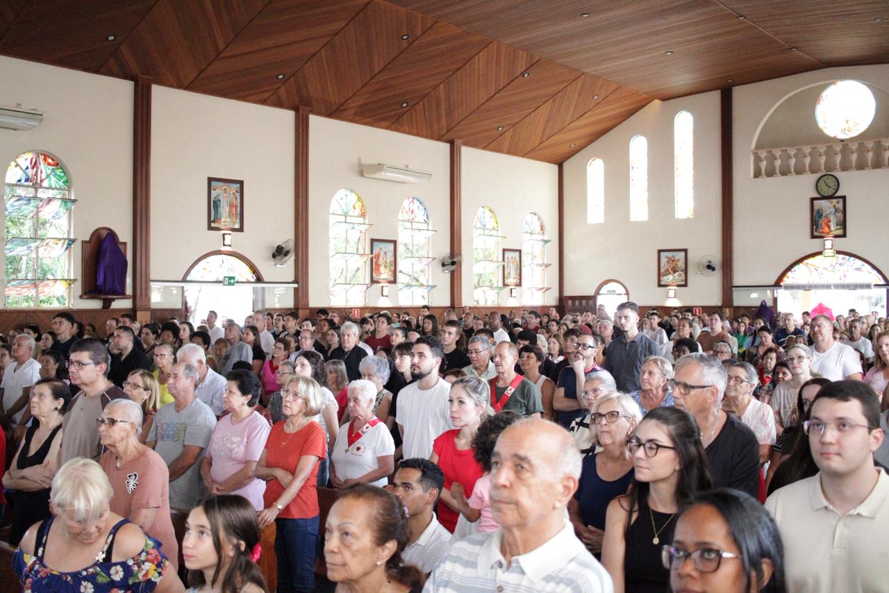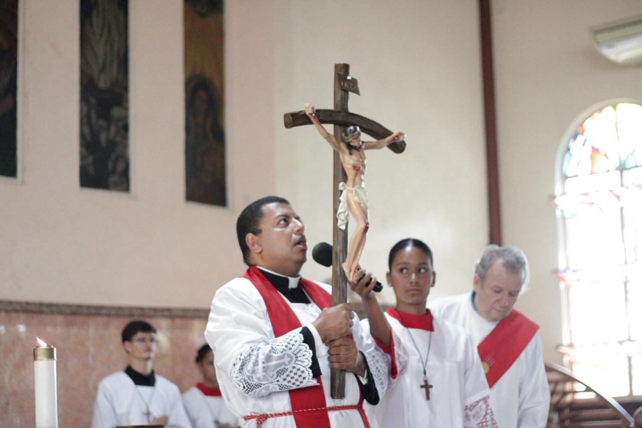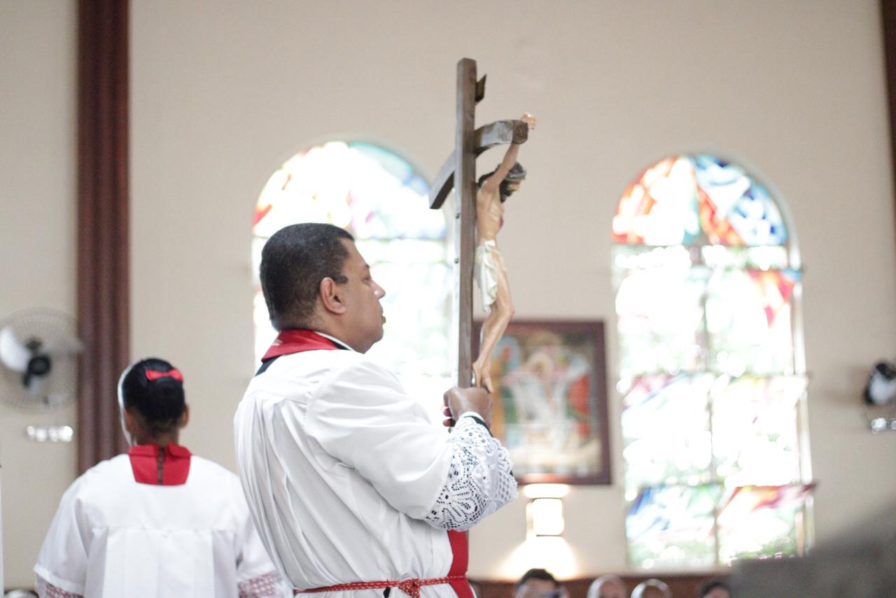 Centenas de fiéis participaram as 15 horas nessa sexta feira santa, 03/04, da Celebração de adoração da Cruz na Paróquia São José Operário. “Essa celebração nos ensina, verdadeiramente, o porque somos filhos e filhas de Deus. Cristo morreu pelos nossos pecados. Sem culpa e sem macha pagou o preço dos nossos pecados e nos tornou filhos e filhas do mesmo Pai. Diante da grandeza desse amor temos que nos ajoelharmos e silenciar os nossos lábios. Nada se iguala ao que Jesus fez por cada um de nós!” disse o Pe. Dirceu Júnior dos Reis em sua homilia.