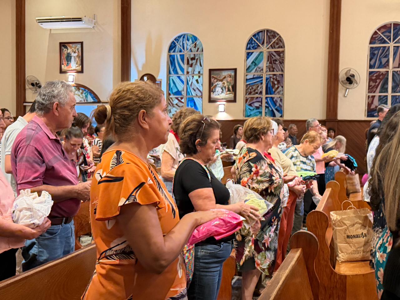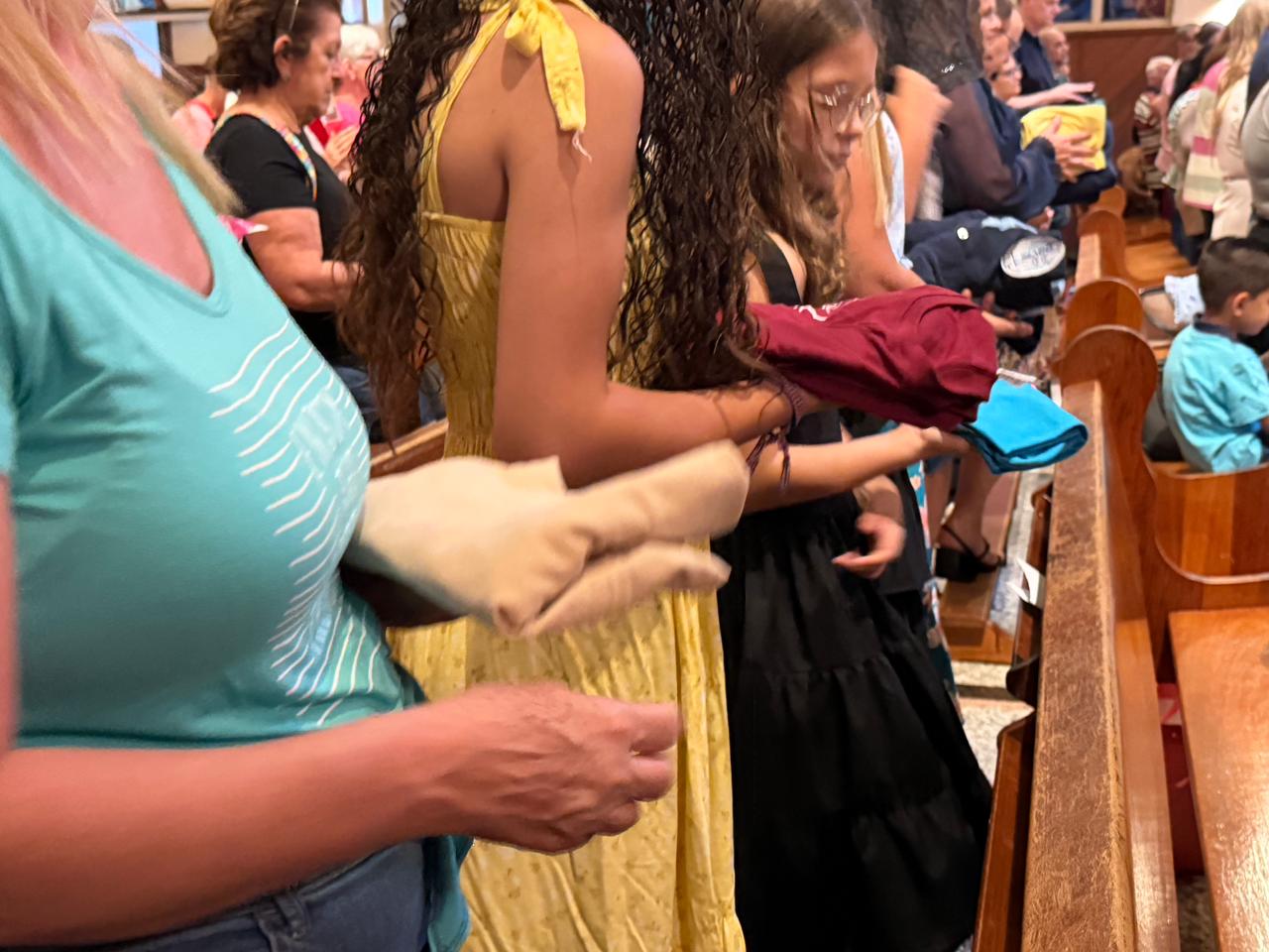 Os fiéis trouxeram para serem abençoados roupas dos familiares enfermos. O padre abençoou e aspergiu água benta essas roupas pedindo a intercessão de São José pela recuperação da saúde de todos os enfermos. Um gesto de fé, intercessão e solidariedade com aqueles que estão enfrentando a dor e o sofrimento da doença.